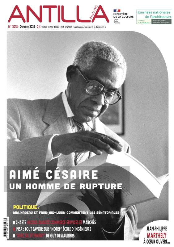 ANTILLA 1 19 8 uis Dep N° 2018 – Octobre 2023 – 3 € – CPPAP 1122 C 86520 – ISSN 0757555 – Guadeloupe/Guyane : 4 € – France : 5 € A I M É C ÉS A I R E UN HOMME DE RUPTURE POLITIQUE : MM. NADEau et françois-lubin commentent les sénatoriales n CHARTE ACCUEIL QUALITÉ COMMERCE SERVICES ET MARCHÉS, n INSA : TOUT SAVOIR SUR “NOTRE” ÉCOLE D’INGÉNIEURS JEAN-PHILIPPE n “AVEC SEL ET PIMENT” DE GUY DESLAURIERS MARTHÉLY À CŒUR OUVERT…
