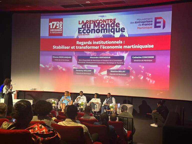 Coûts structurels, LODEOM et fiscalité Outre-mer : quelle stabilité pour 2026 ? Pour le directeur de l’Iedom, les principales contraintes structurelles sont l’insularité et la dépendance aux importations. 80% des biens de consommation sont importés ce qui vient alourdir les coûts logistiques. « Cet élément de contrainte inhérent au territoire est particulièrement fort. On peut l’améliorer mais elle sera présente de façon permanente. » Il poursuit : « Ce sujet des contraintes géographiques et d’éloignement de l’Hexagone nécessite pour les entreprises des stocks importants qui viennent augmenter en fonds de roulement. » L’Iedom a mené une étude récente sur le sujet. Elle montre que par rapport à l’Hexagone, c’est 25 jours de chiffres d’affaires supplémentaires qui sont mobilisés dans les besoins en fonds de roulement dans les entreprises locales. Sandra Casanova, présidente de la commission stratégie logistique du territoire à la CTM, insiste sur la logistique, « politique industrielle silencieuse pour le développement économique» mais également de zone franche douanière. « Beaucoup parlent de hub Martiniquais. Or nous ne pouvons être hub logistique que si nous avons posé un cadre réglementaire. La zone franche douanière est un véritable point de connexions avec les chaînes d’approvisionnement qu’elles soient locales ou mondiales. » Guillaume Gallet-de-Saint-Aurin, vice président de la Fedom affirme quant à lui que l’innovation est une clef : « L’innovation n’a pas de frontière. Faire de la Martinique un territoire d’innovation permettrait de dépasser les frontières et de créer de la valeur ajoutée sur le territoire à destination d’un marché mondial. » Franck Zameo, le président de la CCIM insiste sur la logistique. « L’accompagnement des entreprises au développement international et à la logistique export est très ancré au sein des services de la CCI. » En 2024, 308 entreprises ont été accompagnées à l’export. L’accès aux aides et aux financements est une problématique rencontrée par les entreprises. « Ces aides ne sont pas toujours très simples à trouver. » La CCI représente plus de 36 000 entreprises en Martinique.