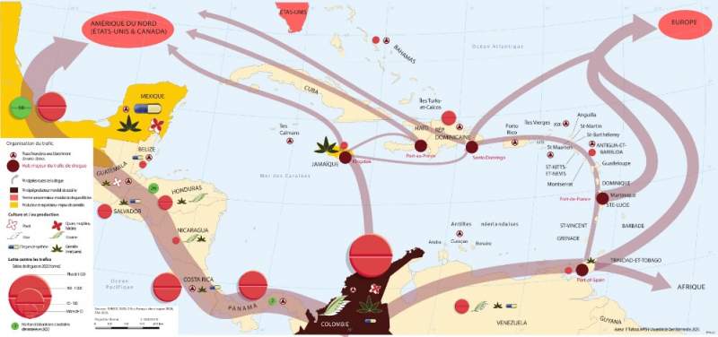 Longtemps perçues comme des zones périphériques dans la géographie mondiale du narcotrafic, les Antilles françaises se trouvent désormais au cœur des routes de la cocaïne entre l’Amérique latine et l’Europe. Fort-de-France et Jarry, en Martinique et en Guadeloupe, sont devenus des points de passage recherchés par les organisations criminelles, qui exploitent la proximité géographique avec les pays producteurs et la densité croissante des flux maritimes régionaux.