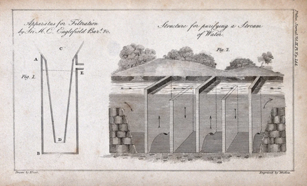 Appareil de filtration de Sir H. C. Englefield Bart. &c. Structure pour purifier un courant d’eau. via JSTOR