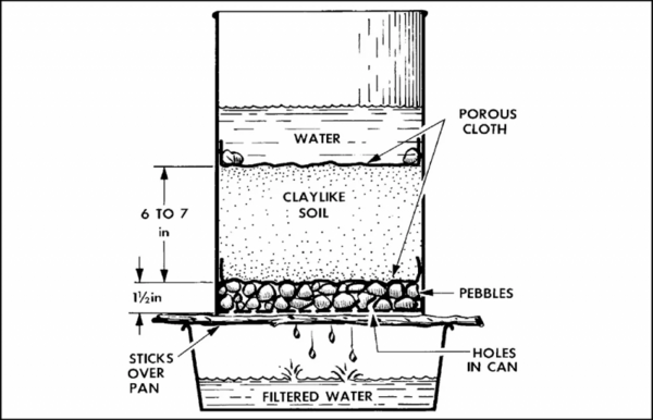 Système de filtration extrait d’un manuel de l’armée américaine via Wikimedia Commons