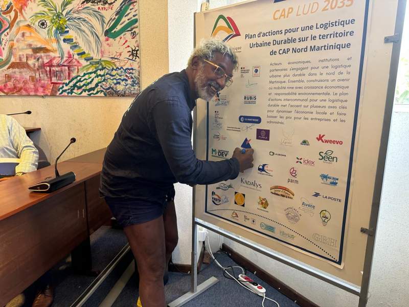 La communauté de communes applique une formule : recenser, modéliser la solution, appliquer la solution et la cadrer. Représentants de l’État, transporteurs, cabinet-conseil et autres. Une vingtaine d’acteurs ont signé la charte du plan d’actions pour une logistique urbaine durable sur le territoire de Cap nord Martinique. Un travail de longue haleine pour les agents de Cap Nord. « Nous avons découvert, qu’ils étaient demandeurs. Il faut sensibiliser les acteurs qui parfois ne sont pas au courant que le prix du transport leur coûte cher », explique Yannick Mathurina.