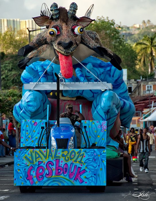 Cette technicité a transformé l’image même du carnaval martiniquais. Certains Vavals ont marqué les esprits, tel « Fesbouk », satire de l’ère numérique, devenu emblématique au point d’être repris sur l’affiche d’un film de Lucien Jean-Baptiste. L’ampleur croissante du carnaval, sa visibilité accrue et son attractivité touristique interrogent : la qualité plastique et structurelle des constructions monumentales participe-t-elle à ce rayonnement ? À l’image de la yole, devenue produit d’appel culturel et sportif, le carnaval bénéficie d’une scénographie spectaculaire et d’une communication qui nourrit son identité contemporaine.