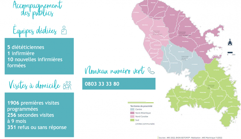 L’accompagnement des populations exposées s’est également intensifié avec le déploiement d’équipes dédiées : 5 diététiciennes, 1 infirmière et 10 nouvelles infirmières formées assurent des visites à domicile. En 2025, 1 906 premières visites ont été programmées et 256 secondes visites à 9 mois ont été réalisées. Un numéro vert gratuit (0803 33 33 80) a été mis en place pour faciliter l’accès à l’information.