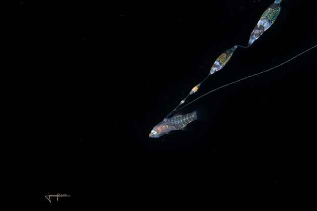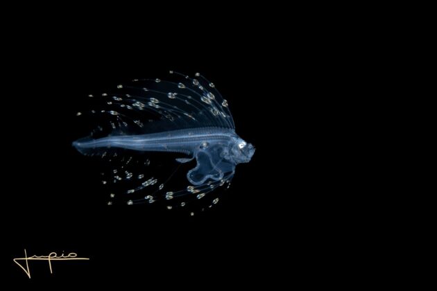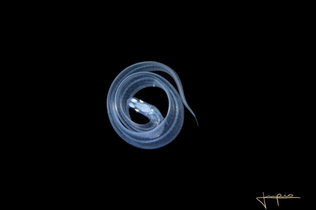 Lui et sa collègue Lindsey Curtis sont souvent les derniers à sortir de l’eau, continuant à photographier ces minuscules créatures. Ils capturent des images de poissons miniatures, souvent translucides, d’anguilles, d’hippocampes ou, notamment lors d’une récente plongée, d’une larve de baleine, qui a suscité un vif intérêt sur le groupe Facebook auquel participent des plongeurs en eaux noires et des scientifiques du monde entier.