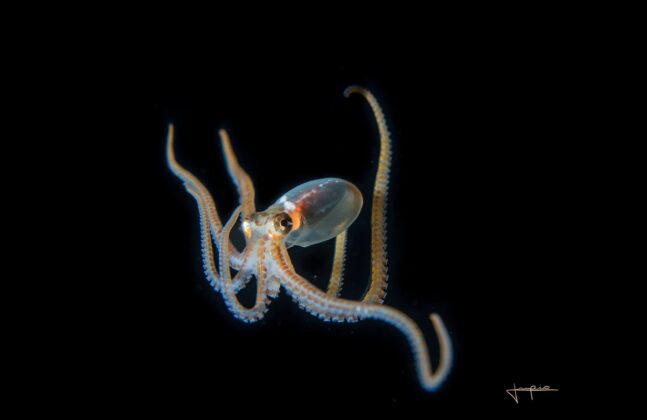 On nous en avertit lors du briefing d’avant plongée. Sur le bateau, en écoutant ça, on se dit : « Évidemment, je vais surveiller ma profondeur », mais oh non, quand un bébé calmar, tout brillant et aux yeux immenses, vous fait signe, vous allez probablement le suivre. Heureusement qu’il y a les ordinateurs de plongée et la pression auriculaire qui vous indique que vous allez plus profond.