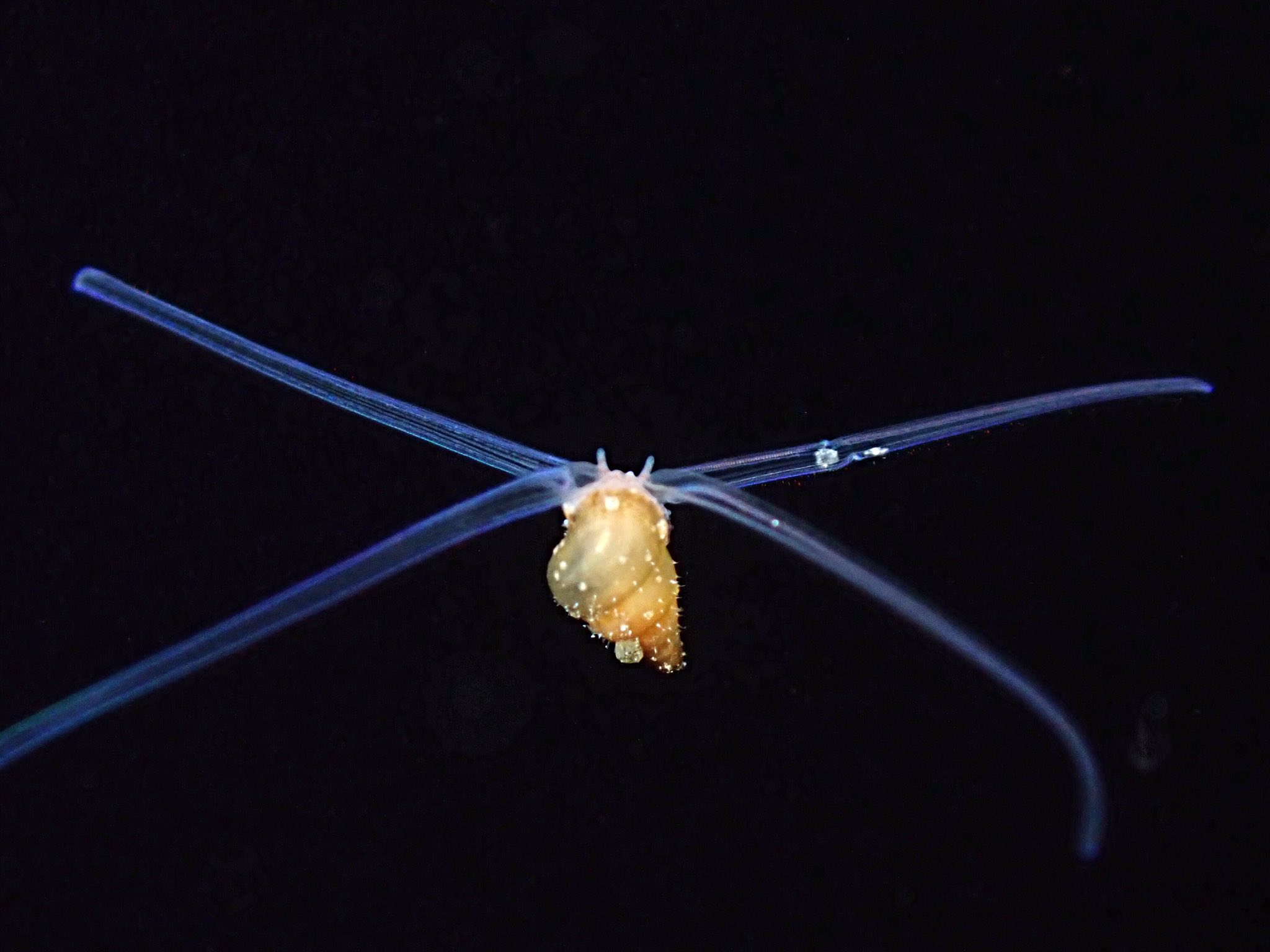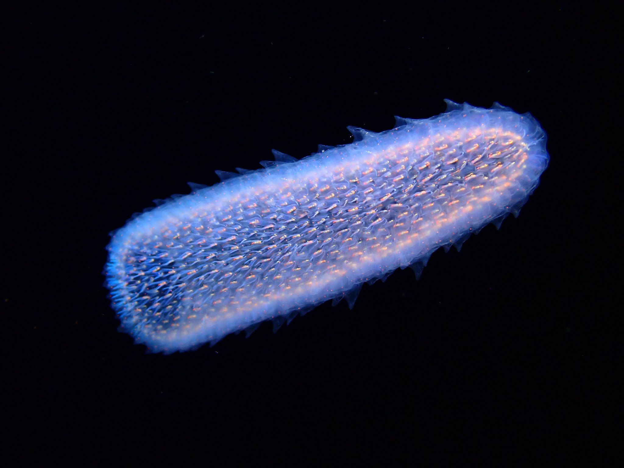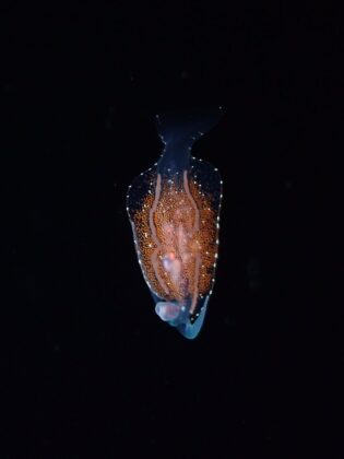 La minuscule créature, aux allures extraterrestres, se fond dans le faisceau lumineux de ma lampe torche, pulsant et brillant. Je la suis pendant plusieurs minutes, avant qu’un autre objet tout aussi étrange n’apparaisse et ne capte mon attention.