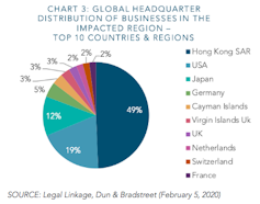 Répartition des pays selon leur niveau de dépendance à la production et aux exportations chinoises (en pourcentage). Rapport Dun & Bradstreet « Business Impact of the coronavirus »