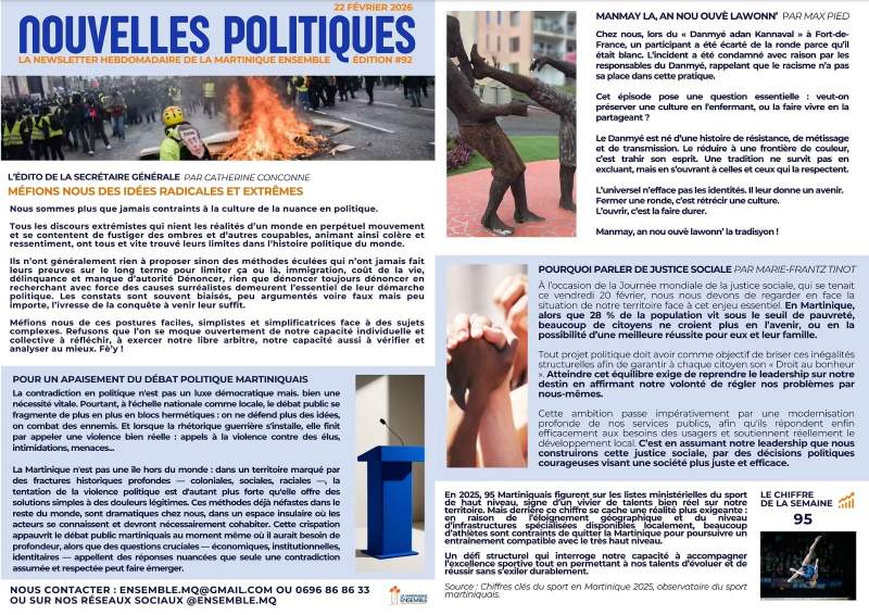 Par Max PIED. newsletter Martinique Ensemble : « Nouvelles politiques »