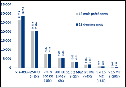 Après s’être diffusée à toutes les tailles d’entreprises, la hausse des défaillances s’est concentrée aux deux extrémités du spectre en 2025 : les plus petites, et les plus grandes. A fin décembre 2025, toutes les entreprises défaillantes pour lesquelles les données financières sont disponibles représentaient encore, au regard des données historiques, des niveaux très élevés de chiffre d’affaires cumulé (35,1 Mds d’euros), soit +1 % sur 1 an et +51 % par rapport à la moyenne 2006-2024) et de passif fournisseurs (7,1 Mds d’euros soit +8 % et +64 % par rapport à la moyenne 2006-2024)