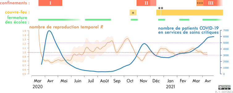 Cette stratégie a été poursuivie début 2021, malgré l’arrivée du variant dit « britannique », plus contagieux, dont la dynamique a été documentée relativement tôt. Résultat : un troisième confinement national a dû être instauré le 3 avril. Les écoles ont été fermées durant 3 semaines (dont deux de vacances scolaires) et une relative liberté de circulation a été maintenue.