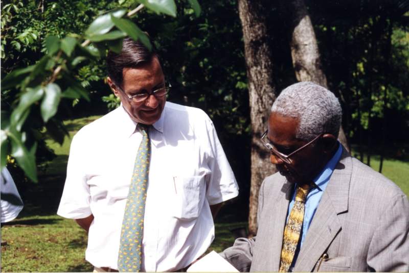 Bernard Hayot et Aimé Césaire plantent le Courbaril à L’Habitation Clément en Martinique