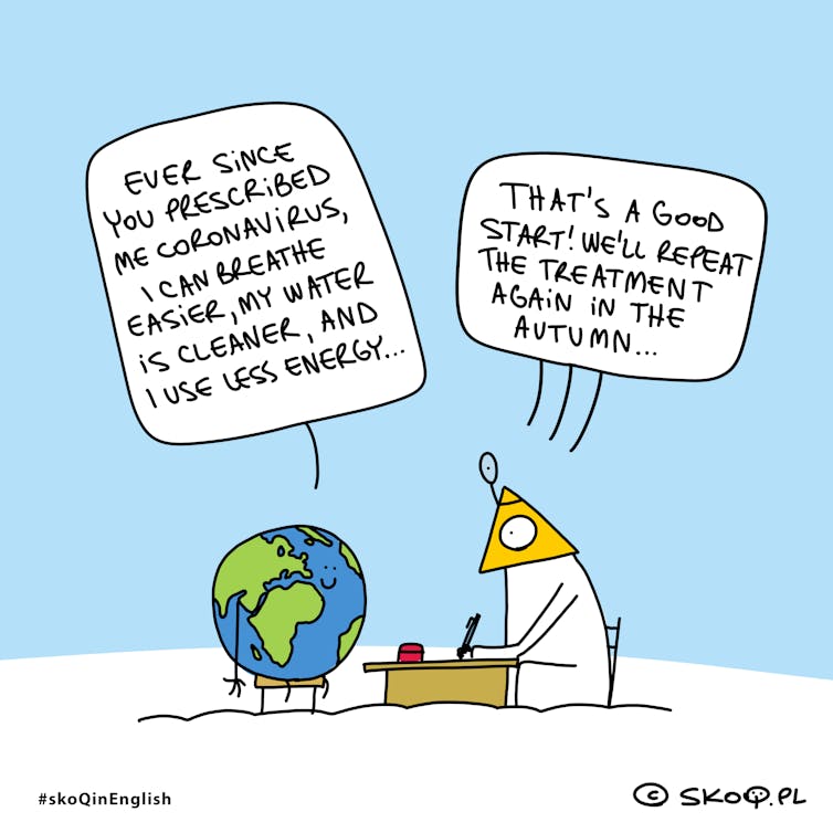 « les plus grandes baisses d’émissions se sont produites aux États-Unis et en Chine, en grande partie en raison des voyages aériens cloués au sol et d’une diminution de la consommation d’eau, de gaz et d’électricité… ».