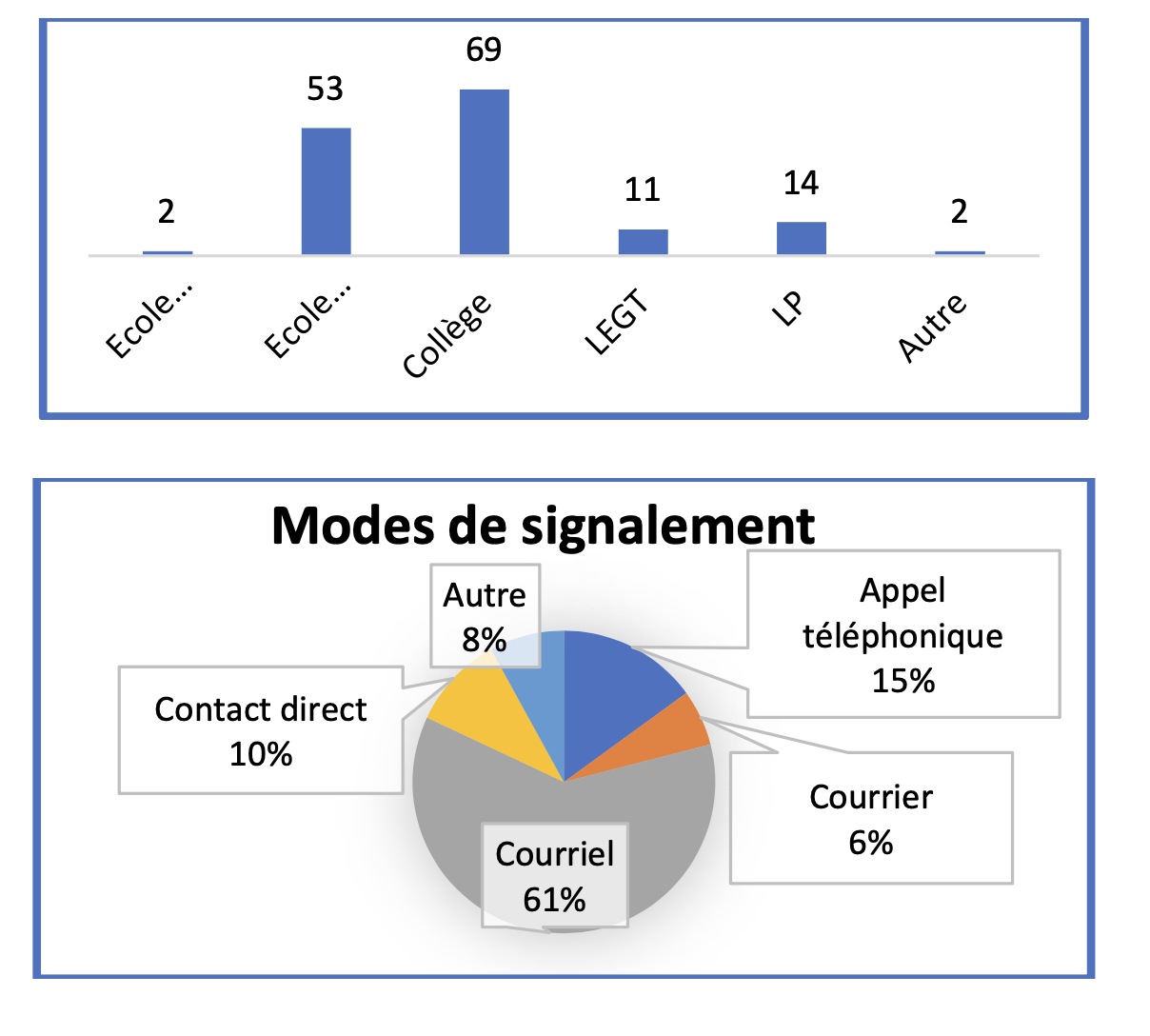 151 situations de harcèlement ont été signalées entre le 1er septembre 2023 et le 12 juillet 2024, soit une augmentation de 129 % par rapport à l’année scolaire précédente. Cette hausse est associée à une plus grande libération de la parole de la part des élèves et à une augmentation des faits de violence dans les établissements scolaires.