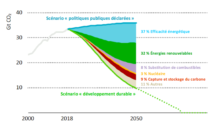 Dans le scénario « développement durable » de l’Agence internationale de l’énergie (AIE), l’efficacité énergétique est d’ailleurs considérée comme le premier levier pour réduire les émissions de CO2. Améliorer l’efficacité énergétique des bâtiments et de toutes les machines qui nous entourent contribuerait à 37 % de l’effort nécessaire pour décarboner l’économie mondiale d’ici 2050.