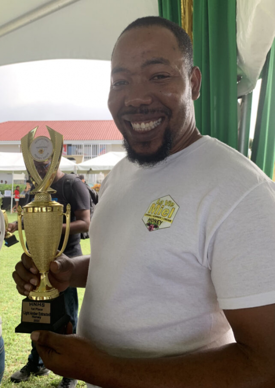 Lucia Honey Show 2023, où il a remporté les prix du meilleur miel ambré clair, du meilleur miel ambré foncé et de la meilleure exposition. La réussite aux niveaux régional et international représente un accomplissement personnel important pour M. Lovell et un progrès décisif pour les apiculteurs dominicains, ouvrant la voie à une plus grande sensibilisation et à des investissements plus importants dans le secteur.