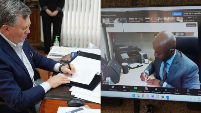 Lors d'une cérémonie hybride, le protocole a été signé par Manuel Otero, directeur général de l'IICA, et Ernest Allen, président de l'ISTA. Crédit photo : IICA