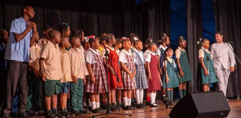 La soirée s’est terminée en apothéose avec la chorale des écoles nationales combinées qui a fait vibrer la salle avec des medleys de louange et de calypso.
