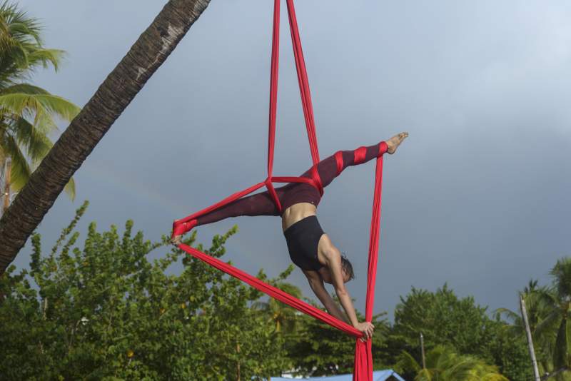 C’est seulement en Martinique que ma passion a réellement pris son envol. Un ami m’a parlé d’une association locale, Lézard Ti Show, et j’ai commencé à m’entraîner avec eux. À défaut de salle adaptée, je me suspendais… aux cocotiers ! Petit à petit, le bouche-à-oreille a fonctionné, j’ai été invitée à faire des démonstrations, puis des spectacles. En 2018, j’ai décroché mes premiers engagements rémunérés. Tout s’est enchaîné à partir de là.