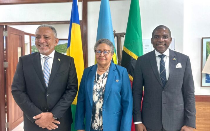 Aujourd’hui, 20 janvier , le président de la CARICOM et Premier ministre de Saint-Kitts-et-Nevis, l’honorable Dr Terrance Drew, a rejoint la secrétaire générale, la Dre Carla Barnett, à Saint-Vincent pour une visite de courtoisie auprès du Dr Godwin Friday, Premier ministre de Saint-Vincent-et-les-Grenadines. Des ministres, des secrétaires permanents et des représentants des gouvernements des deux pays étaient présents. Au cours de cette rencontre, les dirigeants ont souligné les défis auxquels la région est confrontée, tout en reconnaissant le rôle important de la CARICOM pour y remédier. La 50e réunion ordinaire des chefs de gouvernement de la CARICOM, qui se tiendra à Saint-Kitts-et-Nevis du 24 au 27 février, a constitué un point essentiel des discussions. Le Premier ministre Friday a également été informé des points à l’ordre du jour et des questions clés en vue de cette réunion.