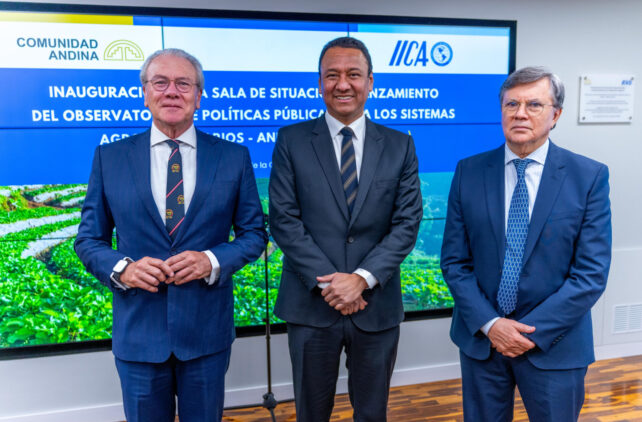Selon le communiqué de presse de l’IICA, la Salle de situation de l’OPSAa andine facilitera les rencontres en présentiel et virtuelles, notamment les débats politiques, les séminaires techniques, les ateliers et les initiatives de renforcement des capacités. Située au siège du Secrétariat de la Communauté andine à Lima, au Pérou, cette salle est dotée d’une technologie de pointe pour permettre une communication à distance fluide entre les pays membres.