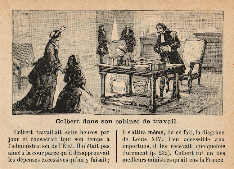 Colbert dans son cabinet de travail. Cette image provient d’un manuel paru en 1907 chez Armand Colin (collection personnelle de l’auteur)
