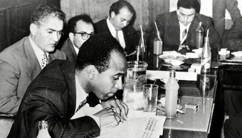Crédits image : Frantz Fanon à une conférence de presse réunissant des écrivains à Tunis, par un auteur inconnu, domaine public