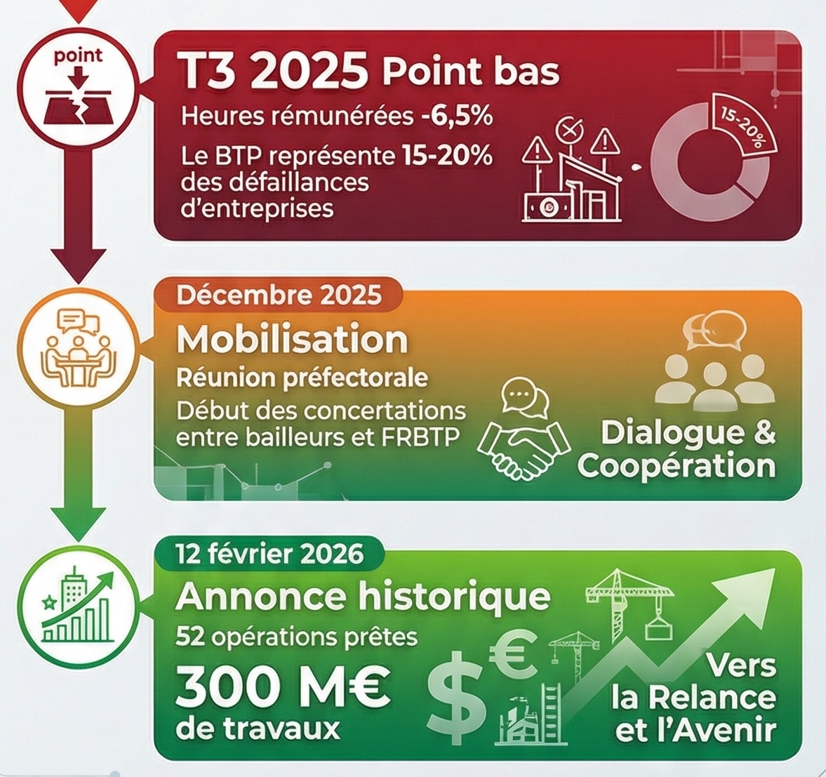 Alors que le secteur du BTP en Martinique traverse l’une des périodes les plus critiques de ces dernières années, une séquence pourrait marquer un point d’inflexion. 52 opérations de logement social sont désormais prêtes à être lancées, représentant plus de 300 millions d’euros de travaux à engager dès 2026. Construction neuve, réhabilitation, entretien lourd : l’ensemble de la chaîne du bâtiment est concerné.