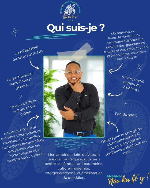 faire du Vauclin une commune qui avance sans perdre son âme, alliant patrimoine, culture, modernité, intergénérationnel et amélioration du quotidien.