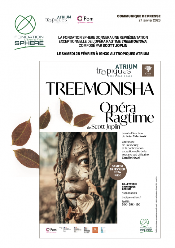 Le samedi 28 février 2026 à 19h30, la Fondation d’Entreprise SPHERE et le Tropiques Atrium — Scène Nationale offrent au public martiniquais une soirée exceptionnelle : la représentation unique de Treemonisha, le chef-d’œuvre de l’opéra ragtime signé Scott Joplin. Un événement placé sous le signe de la mémoire, de l’émancipation et de la beauté musicale.