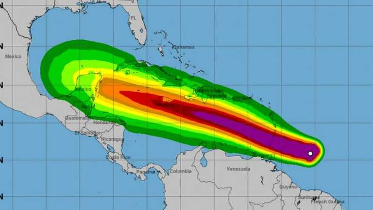 On s’attend actuellement à ce que l’ouragan traverse le centre de la mer des Caraïbes.