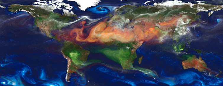 Ces particules sont facilement transportées par les vents et peuvent parfois parcourir des milliers de kilomètres avant de se dissiper, ou d’être déposées sur le sol par le vent ou la pluie. Pensez par exemple au sable du Sahara, qu’on retrouve de temps en temps sur les pare-brise des voitures, ou aux fumées qui obscurcissent le ciel parfois très loin des zones où se déroulent les grands incendies qui ravagent certaines régions.