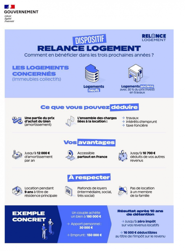 Deuxième pilier, présenté comme un outil majeur : un dispositif fiscal « Relance Logement », conçu pour encourager l’investissement locatif et “remettre du logement sur le marché”, avec une volonté d’aller au-delà des mécanismes jugés trop complexes ou trop limités.