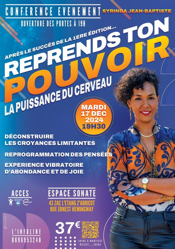Syringa Jean-Baptiste : Ce thème m’est apparu essentiel parce que nous avons souvent l’impression d’être prisonniers de nos circonstances ou de nos croyances limitantes. Pourtant, nous avons en nous un potentiel énorme pour transformer notre réalité. Cette conférence vise à aider chacun à reprendre les rênes de sa vie en comprenant le fonctionnement de son cerveau et en libérant son plein potentiel.