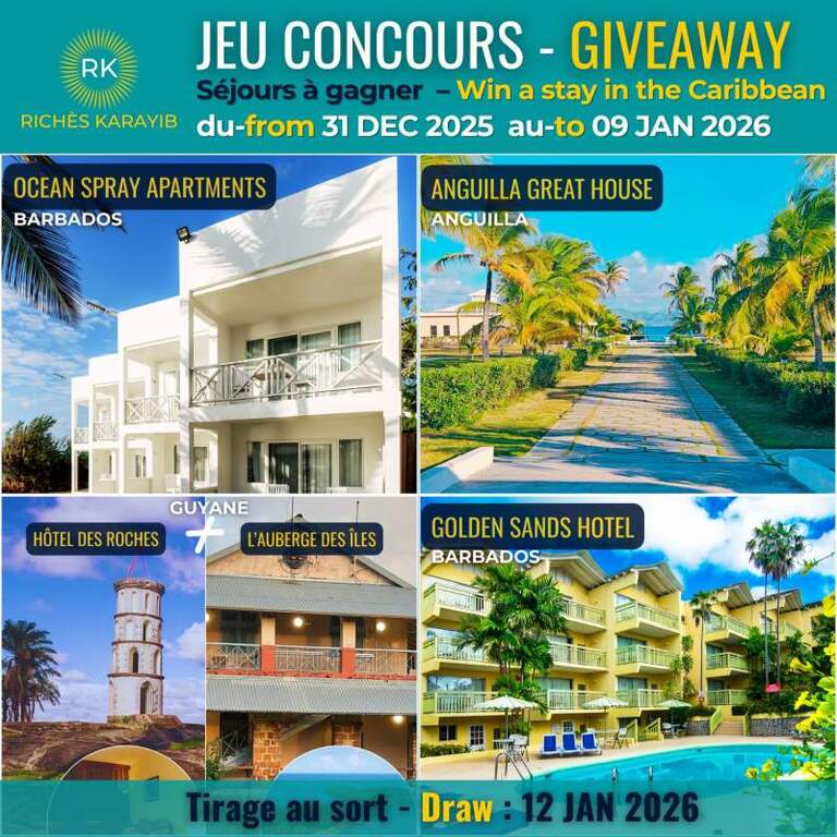 Pour bien commencer l’année 2026, Richès Karayib propose à ses lecteurs un jeu-concours inédit avec, à la clé, des nuitées à gagner dans la Grande Caraïbe, en partenariat avec plusieurs acteurs.