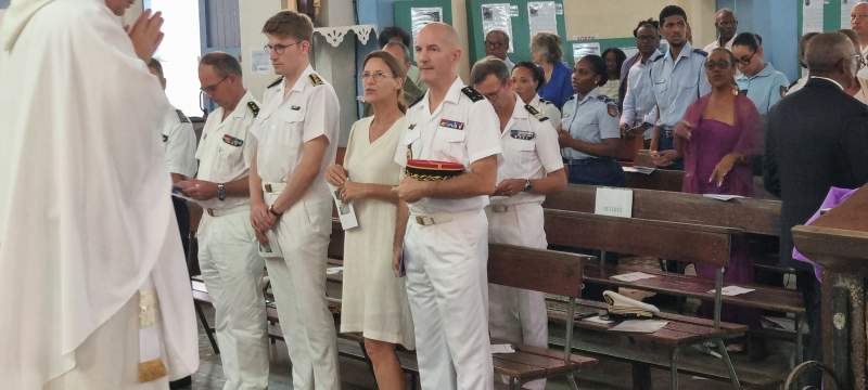 La célébration de la Sainte-Geneviève s’est également appuyée sur une dimension artistique et patrimoniale forte, à travers la statue de la sainte patronne, réalisée par Louis Racine, sculpteur installé au Vauclin. Cette œuvre, conçue et façonnée en Martinique, donne un visage local à une tradition ancienne de la gendarmerie nationale. Par son travail, l’artiste inscrit la figure de Sainte-Geneviève dans le paysage martiniquais, en faisant dialoguer symbolique républicaine, spiritualité et création locale. Une manière, aussi, de rappeler que ces temps institutionnels s’ancrent dans un territoire vivant, porté par ses forces de sécurité autant que par ses créateurs.