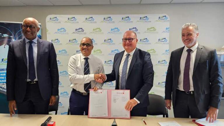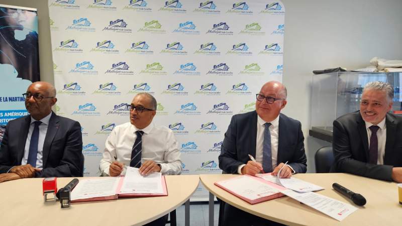 En présence des médias et des principaux acteurs du projet, la cérémonie a rassemblé Bruno Mencé, président du directoire du GPMLM, Philippe Jock, président du conseil de surveillance et président de la CCIM, ainsi que Yvanh Alingery, directeur d’exploitation du GPMLM. Côté Banque des Territoires, étaient présents M. Loïc Rolland, directeur Antilles, et Roland Picot, directeur Martinique.