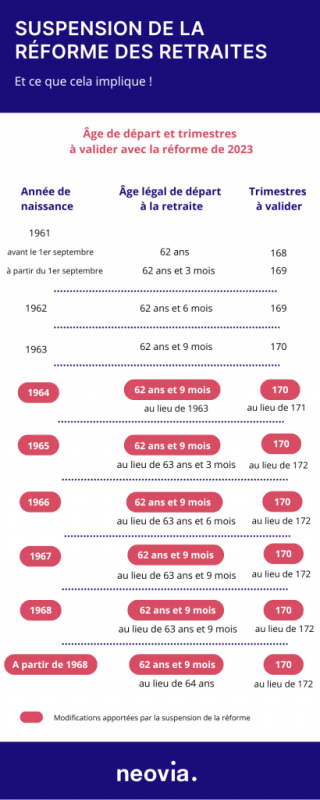 – L’âge légal de départ est gelé : il ne suivra plus la montée en charge prévue.