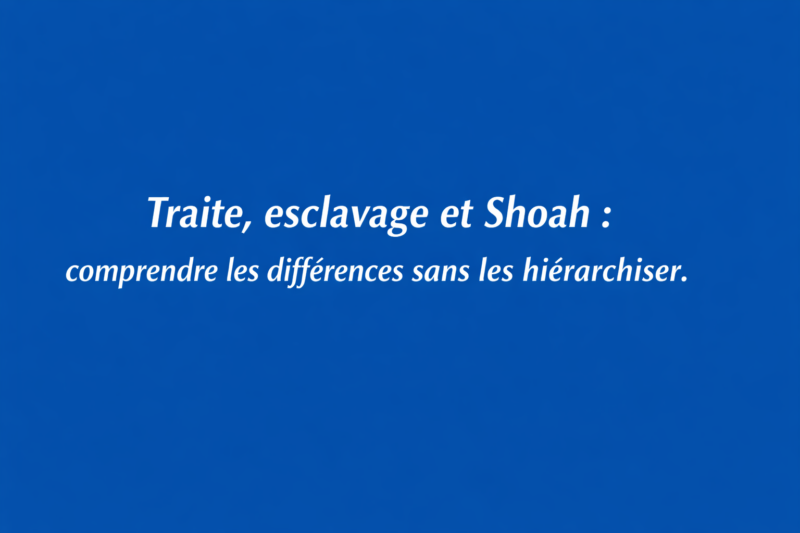La question de la différence entre la traite transatlantique, l’esclavage colonial et la Shoah est particulièrement sensible. Elle ne peut être abordée qu’avec prudence, en évitant toute hiérarchisation des souffrances. L’enjeu est de comprendre les logiques propres à ces crimes, non de les comparer en termes de gravité.