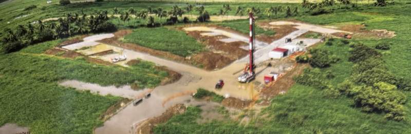 Au-delà des contraintes environnementales, le chantier se déroule dans une zone soumise à la servitude aéronautique de l’aéroport du Lamentin. Les opérations de forage ont dû être strictement encadrées.