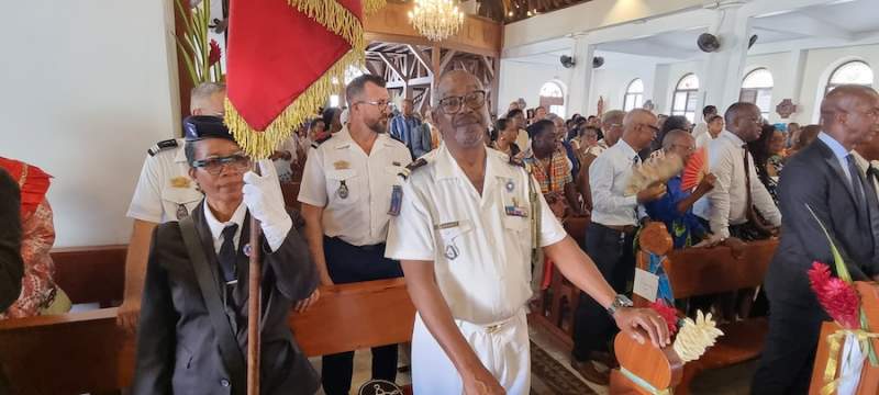 À ses côtés, le diacre Félix Jean-Gérard Thomas, ancien médecin et ancien chef des sapeurs-pompiers de Martinique, a tenu à rappeler la dimension de foi et de courage incarnée par le saint patron :